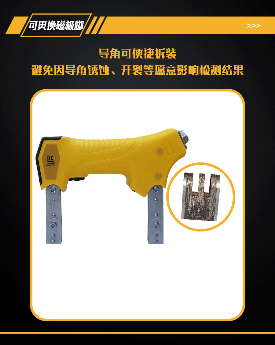 4、平面、A型、45°、大斜面4種磁極腳,適用更多的檢測(cè)工件。(選配)