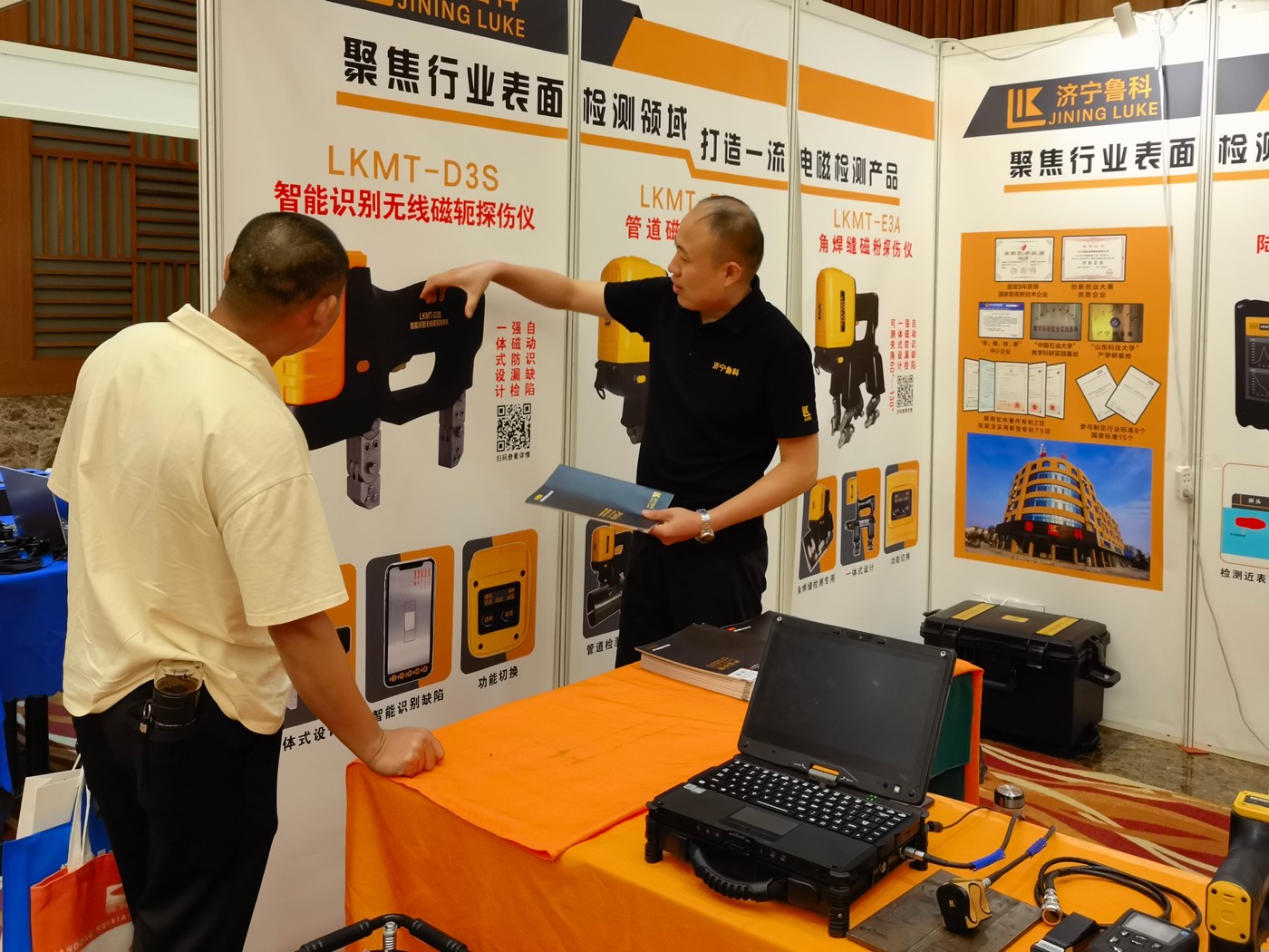 濟(jì)寧魯科檢測(cè)器材有限公司攜聯(lián)合中國(guó)石油大學(xué)(華東)合作研發(fā)的ACFM交流電磁場(chǎng)檢測(cè)儀及自主研發(fā)的一體式磁粉探傷儀、管道磁粉探傷儀、角焊縫磁粉探傷儀、腐蝕測(cè)厚機(jī)器人等設(shè)備參加設(shè)備展示,儀器一經(jīng)亮相便引起與會(huì)代表廣泛關(guān)注與一致好評(píng)。