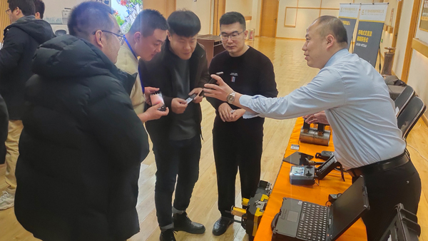 濟(jì)寧魯科檢測(cè)器材有限公司攜聯(lián)合中國(guó)石油大學(xué)(華東)研發(fā)的LKACFM交流電磁場(chǎng)檢測(cè)儀,及自主研發(fā)的LKMT-D3系列無(wú)線磁軛探傷儀、LKMT-E3L系列管道磁粉探傷儀、LKMT-E3A系列角焊縫磁粉探傷儀、LKEMAT-A2腐蝕測(cè)厚機(jī)器人等無(wú)損檢測(cè)設(shè)備參加設(shè)備展示,儀器一經(jīng)亮相,便引起與會(huì)高檢師廣泛關(guān)注與一致好評(píng)。