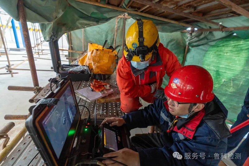 記者跟隨檢驗人員走進球罐內部,罐內一片漆黑,借助手機手電筒微光才看得見一至兩米遠。罐內缺氧的環(huán)境讓人倍感不適,而爬壁機器人卻如忠實的“鋼鐵哨兵”,背部牽引著20余米長的防墜落繩,檢測裝置緊貼罐壁緩慢前行,磁粉液順著檢測軌跡有序流下,持續(xù)穩(wěn)定地完成焊縫高精度檢測,絲毫不受惡劣環(huán)境影響。