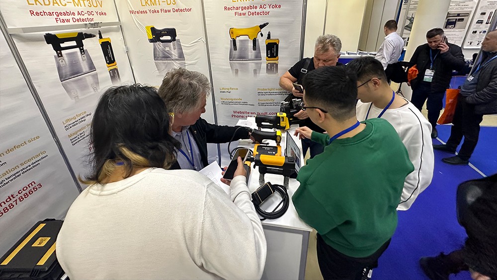 2024年4月15日,濟(jì)寧魯科檢測(cè)器材有限公司代表團(tuán)遠(yuǎn)赴俄羅斯莫斯科,參加2024年俄羅斯莫斯科NDT展。亮相本次展會(huì)的設(shè)備有聯(lián)合中國(guó)石油大學(xué)(華東)共同研發(fā)的ACFM交流電磁場(chǎng)檢測(cè)儀,自主研發(fā)的無(wú)線(xiàn)式磁粉探傷儀、管道磁粉探傷儀、角焊縫磁粉探傷儀、腐蝕測(cè)厚機(jī)器人等。儀器一經(jīng)亮相,便引起國(guó)際友人廣泛關(guān)注與一致好評(píng)。