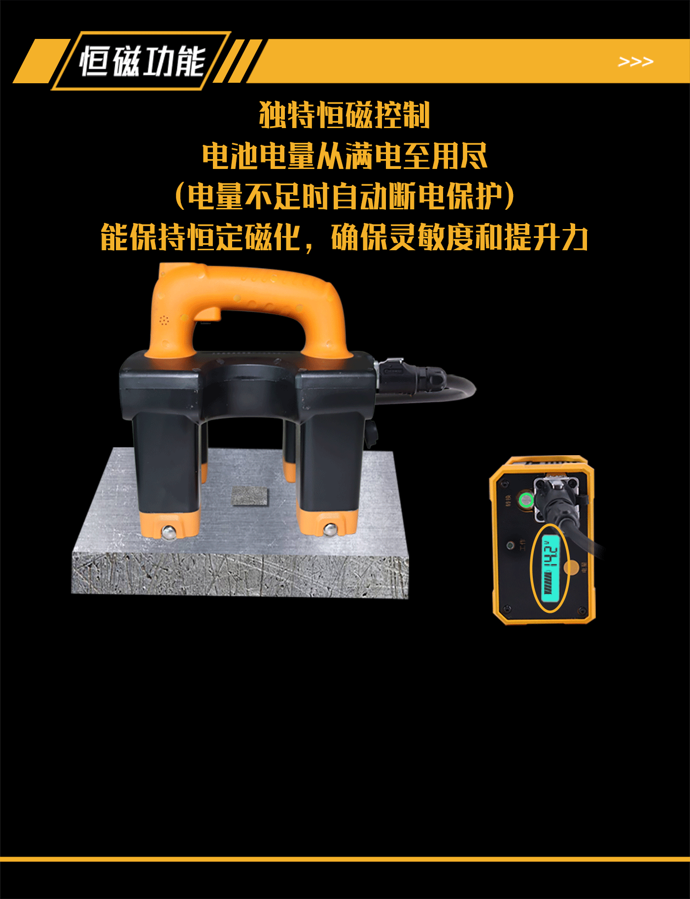 8、恒磁控制功能,因電量下降導(dǎo)致提升力不滿足探傷需求時(shí)自動(dòng)斷電,保證探傷靈敏度;