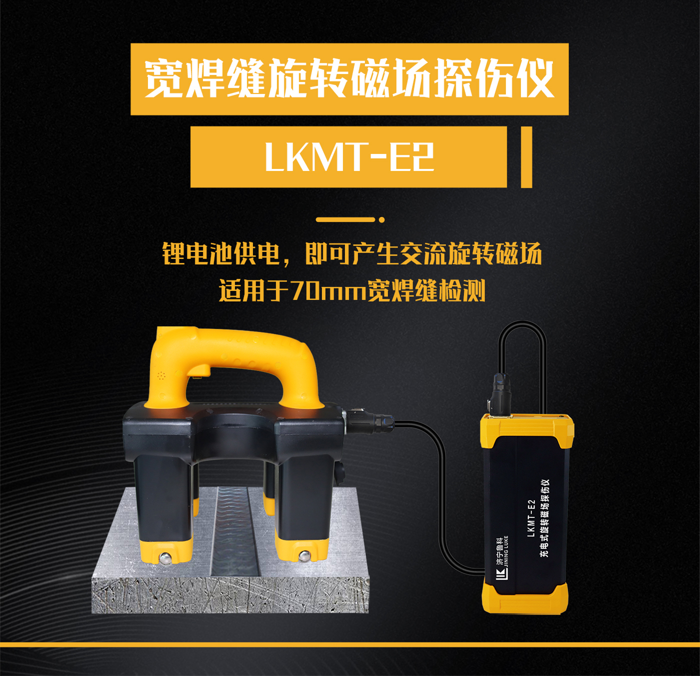 1、LKMT-E2寬焊縫旋轉(zhuǎn)磁場探傷儀,采用鋰電池電源供電,無需外接110V或220V電源即可產(chǎn)生交流旋轉(zhuǎn)磁場進(jìn)行探傷;