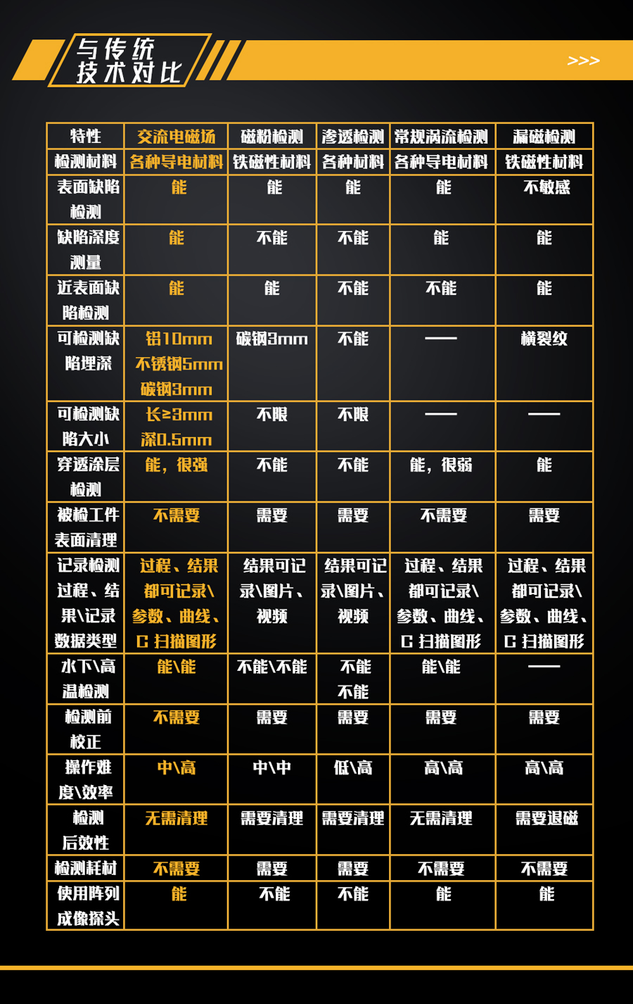 1、交流電磁場(chǎng)檢測(cè)技術(shù)適用各種導(dǎo)電體材料,主要用于鐵磁性或非鐵磁性材料對(duì)于表面或近表面的缺陷可以快速準(zhǔn)確的檢出;