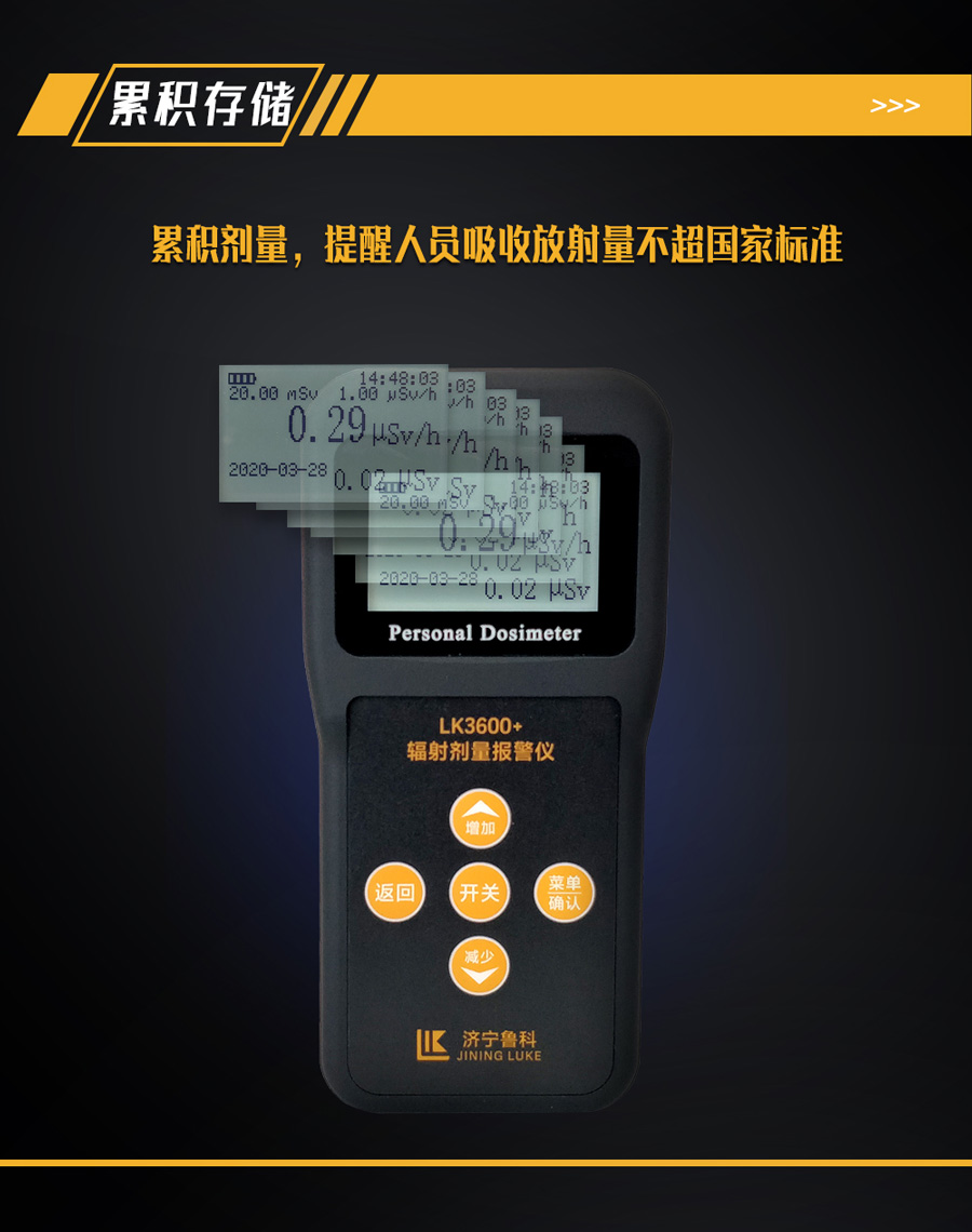 6、累積存儲(chǔ):累積劑量,提醒人員吸收放射量不超國(guó)家標(biāo)準(zhǔn);