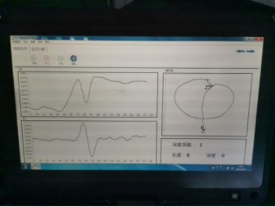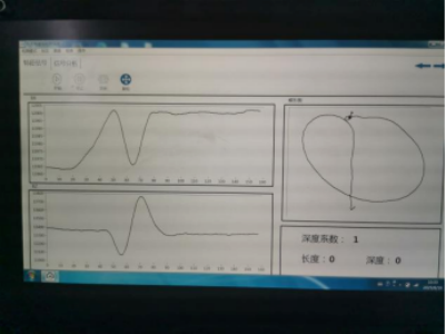 (2)由于是在實(shí)驗(yàn)室進(jìn)行檢測(cè),沒(méi)有帶涂漆層試塊,因此用紙張和墊板來(lái)模擬涂漆層進(jìn)行實(shí)驗(yàn),模擬2mm涂層檢測(cè)結(jié)果如下圖所示。