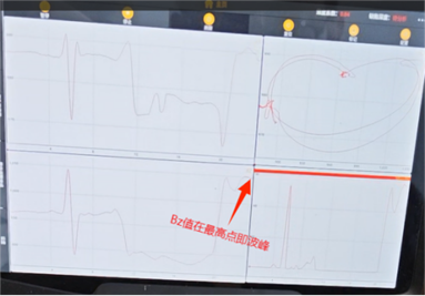 圖上可以看出是否使用編碼器對缺陷信號的掃查沒有影響,Bx信號明顯有波谷特征,Bz信號有波峰和波谷,蝶形圖閉合成圓形。僅測量缺陷長度同樣只需要看Bz信號,由于沒有配備編碼器,需要手動找Bz信號的波峰和波谷位置。在掃查到完整的缺陷信號之后,可以看到Bz信號有波峰和波谷及對應(yīng)的縱坐標(biāo)值,此時需要反方向即往回掃查,等掃查到Bz信號的值在最高值和最低值時,將探頭保持不動,用馬克筆在探頭中間位置做標(biāo)記,兩標(biāo)記之間的距離即缺陷長度值。