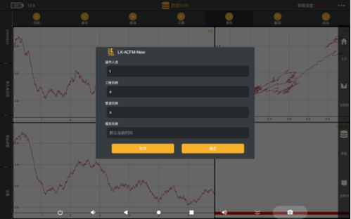 點擊報告按鈕,彈窗輸入操作人員、工程名稱、管道名稱和報告名稱,點擊確定即可根據(jù)配置信息和檢測數(shù)據(jù)生成報告,并將報告保存到設備本地文件夾。