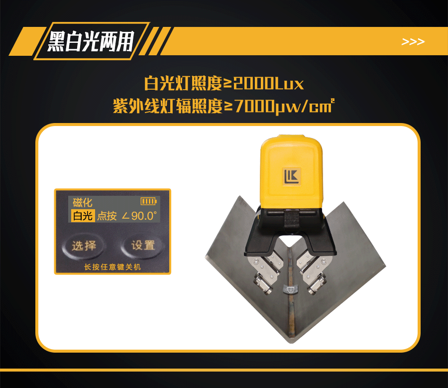 1、LKMT-E3AS一體式旋轉(zhuǎn)磁場角焊縫磁粉探傷儀,探頭與鋰電池一體式設(shè)計(jì),無需使用線鏈接;