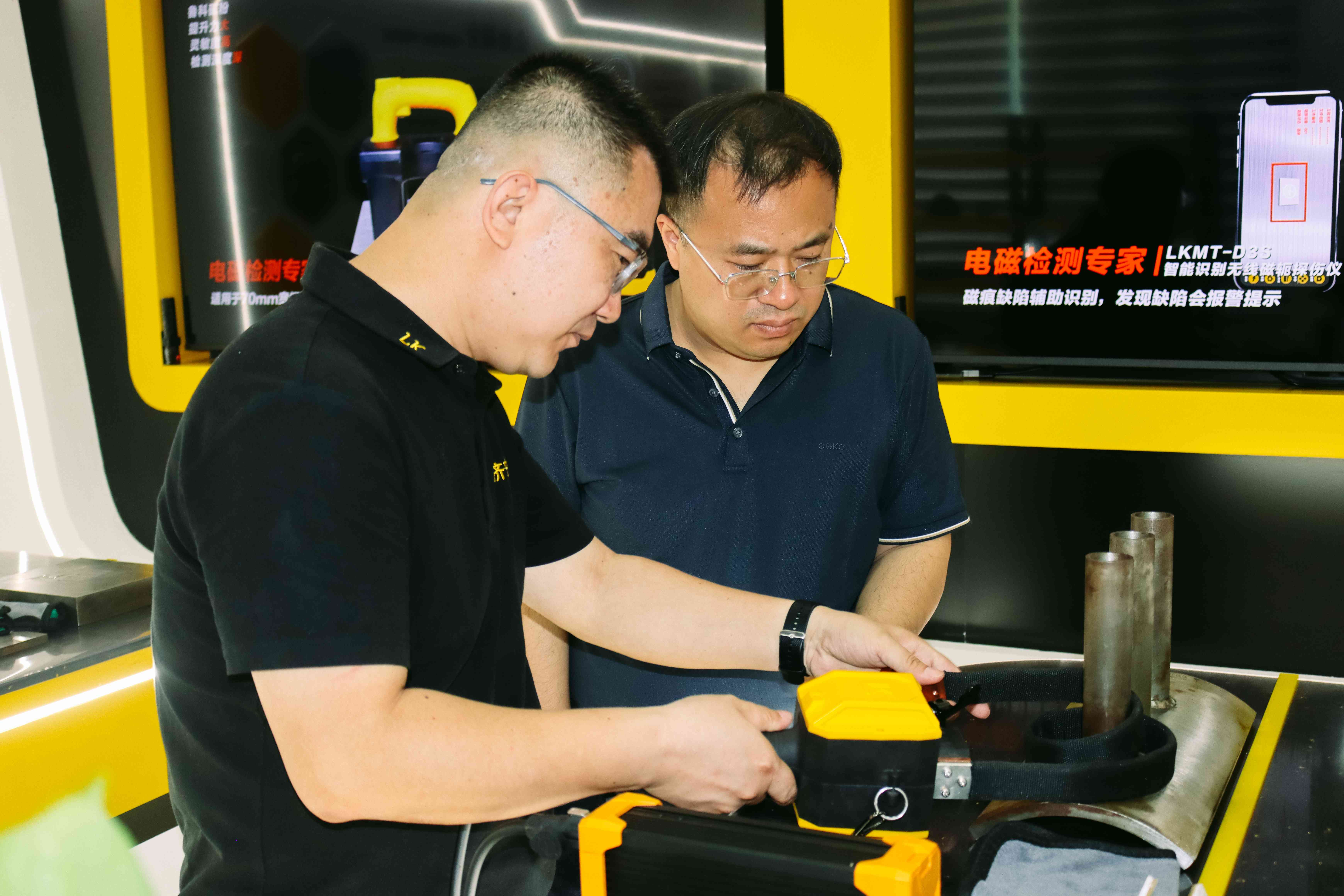 各位專家分別參觀了公司的 磁粉探傷儀(智能識別磁粉探傷儀、場景定制化磁粉探傷儀、一體式磁粉探傷儀、充電式磁粉探傷儀等)交流電磁場檢測儀(ACFM) 自動化檢測儀(磁粉探傷機器人、腐蝕測厚機器人)。